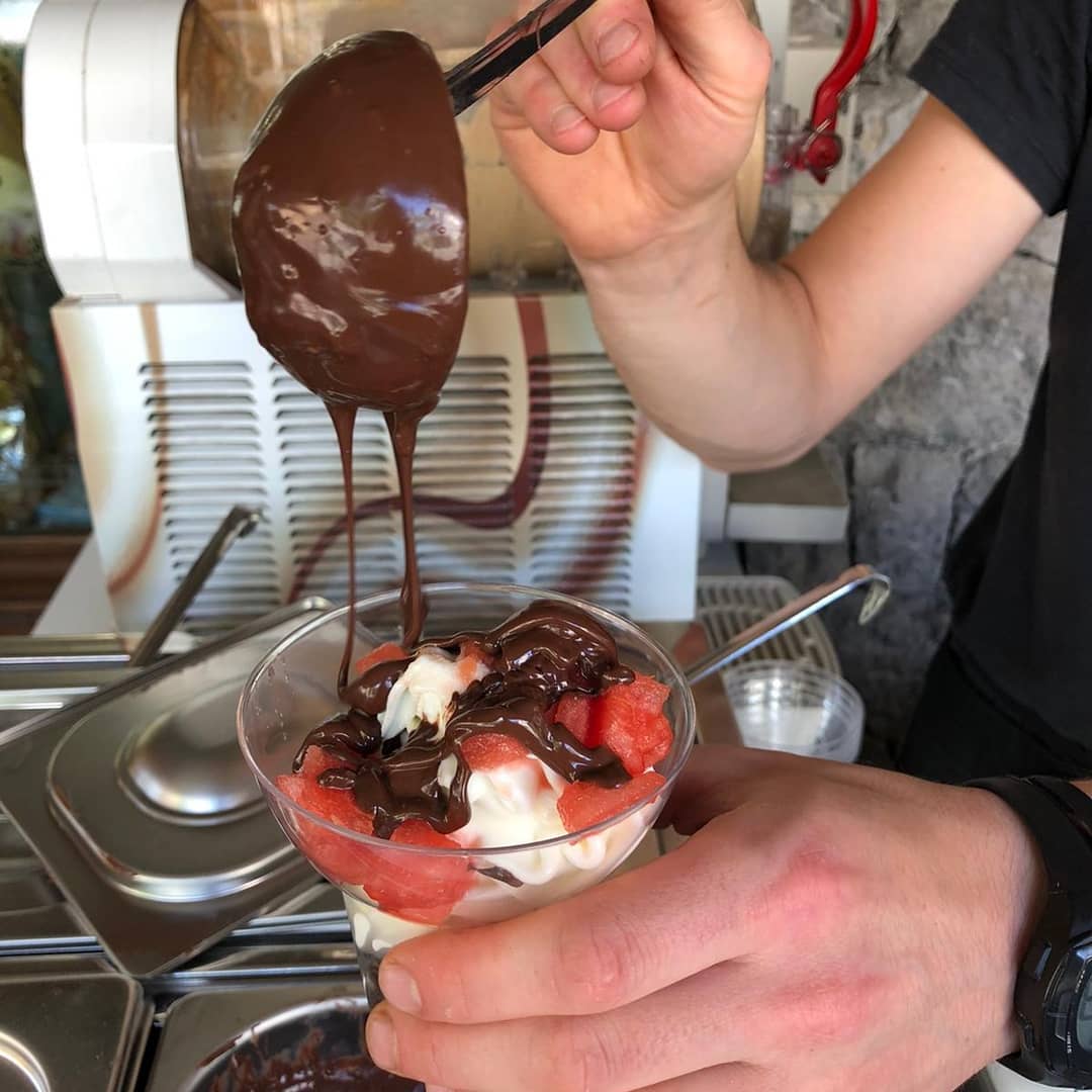 Seguiamo le tendenze, facendo attenzione a non trascurare le materie prime. Con questo principio, abbiamo recentemente introdotto il FROZEN YOGURT, un'accoppiata vincente tra yogurt soffice e un'ampia scelta di guarnizioni e salse. Fresco, dolce e divertente, il nostro Yogurt Frozen vi farà tornare bambini. È semplice, basterà aggiungere all'yogurt ciò che più vi intriga: macedonia, ananas, cocco, anguria, cereali, cioccolato e molto altro ancora, il tutto guarnito con cioccolato fuso. Abbiamo dedicato a questa specialità un'intera postazione all'esterno del locale. Non resta che passare alla degustazione e ricordatevi che il Frozen Yogurt non conosce età!